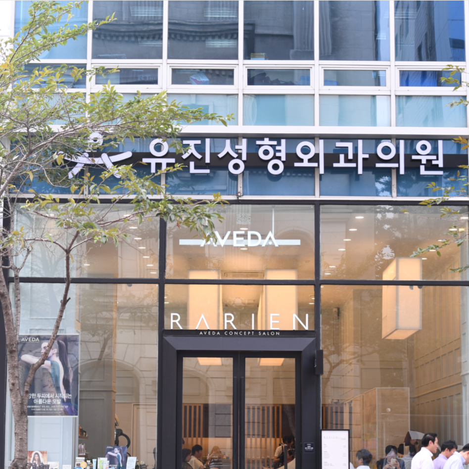 德萊茵整形外科位於江南區林蔭路65號東南大廈,佔據4、5、6三個樓層,體量在三家中最大,項目覆蓋範圍也最廣。林蔭路(Garosu-gil)是江南知名的精品街,周邊環境高端,客群定位清晰。