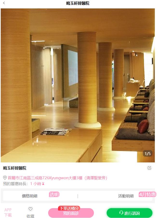 | 項目 | 鳴玉軒韓醫院 | 立體整形醫院 |
